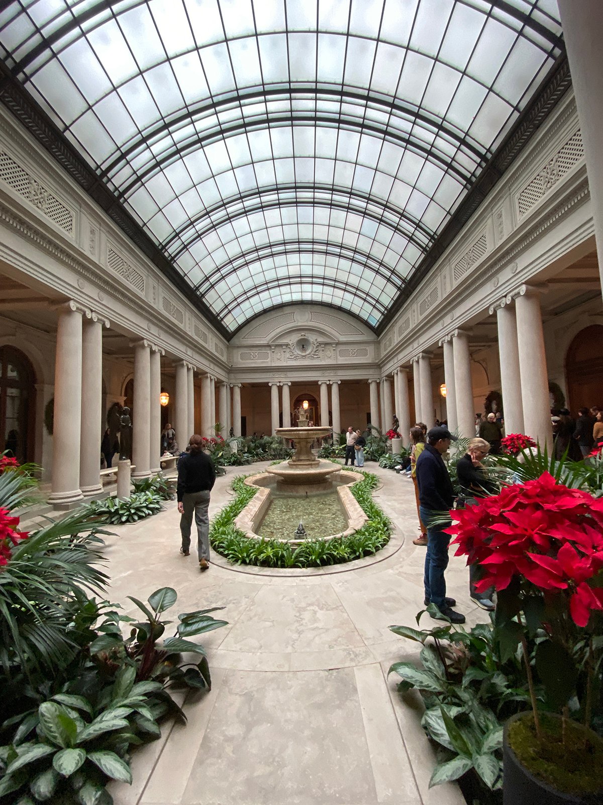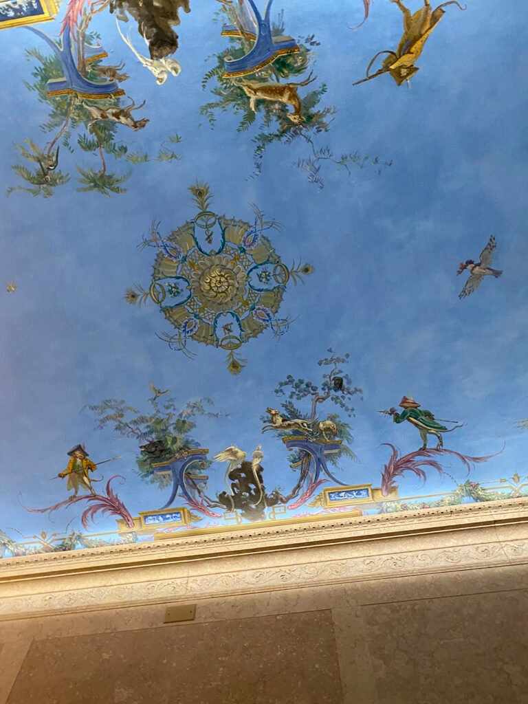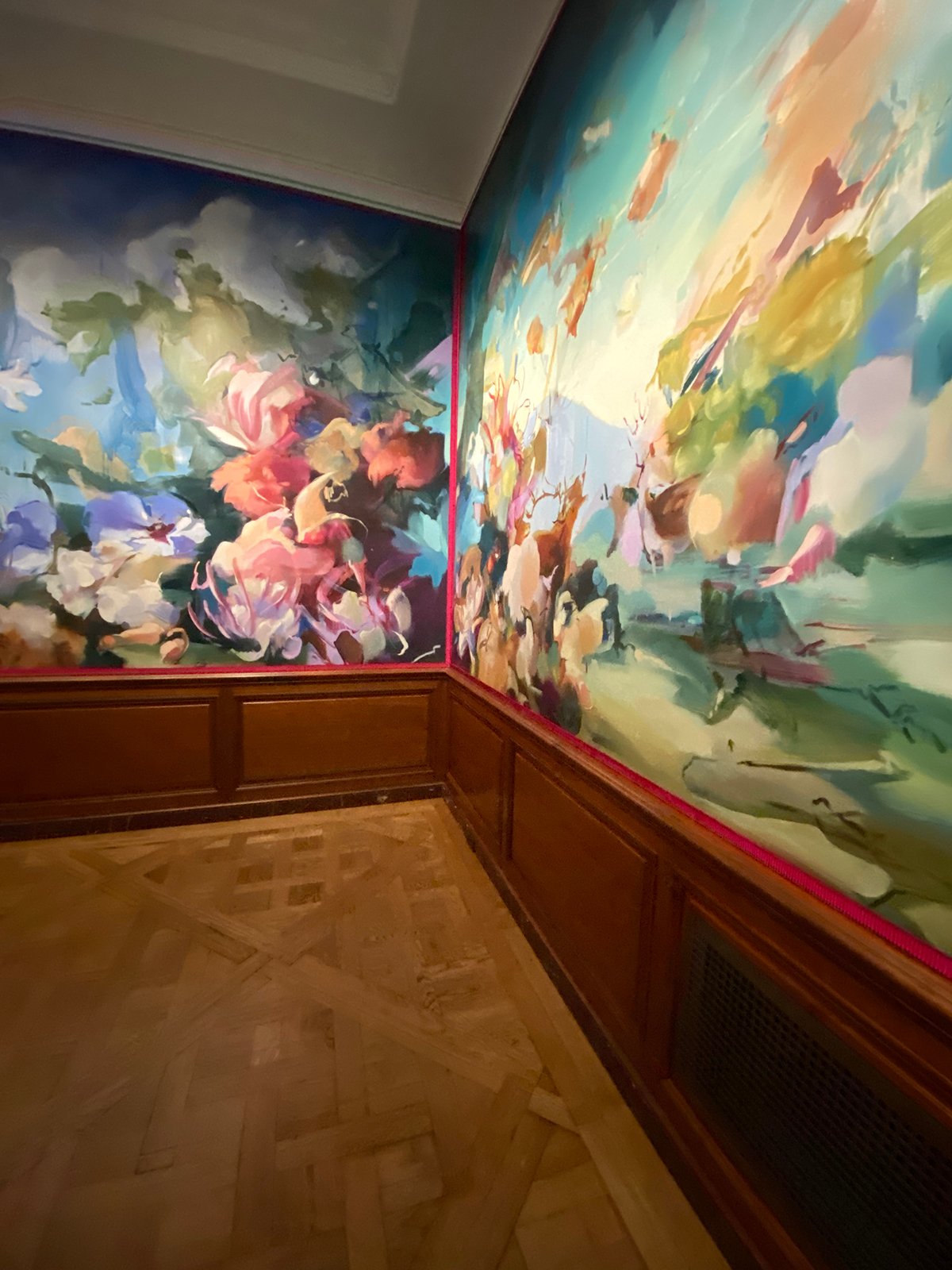 On a separate occasion, I headed to the Upper East Side to visit the recently renovated Frick Museum. I’ve seen this collection many times, in the original location, in its temporary home at the old Whitney on Madison Ave, and now back in its refurbished quarters. There are no photos allowed technically, yet I captured a few random shots on this uber crowded museum day. The room painted by contemporary artist Flora Yukhnovich was lusciously beautiful and inspiring – melding into the 19th century aesthetic of its surroundings seamlessly.