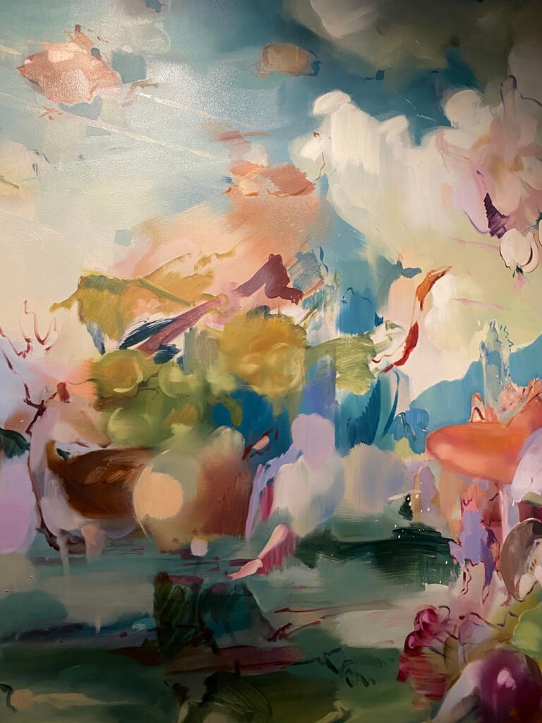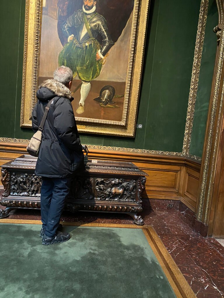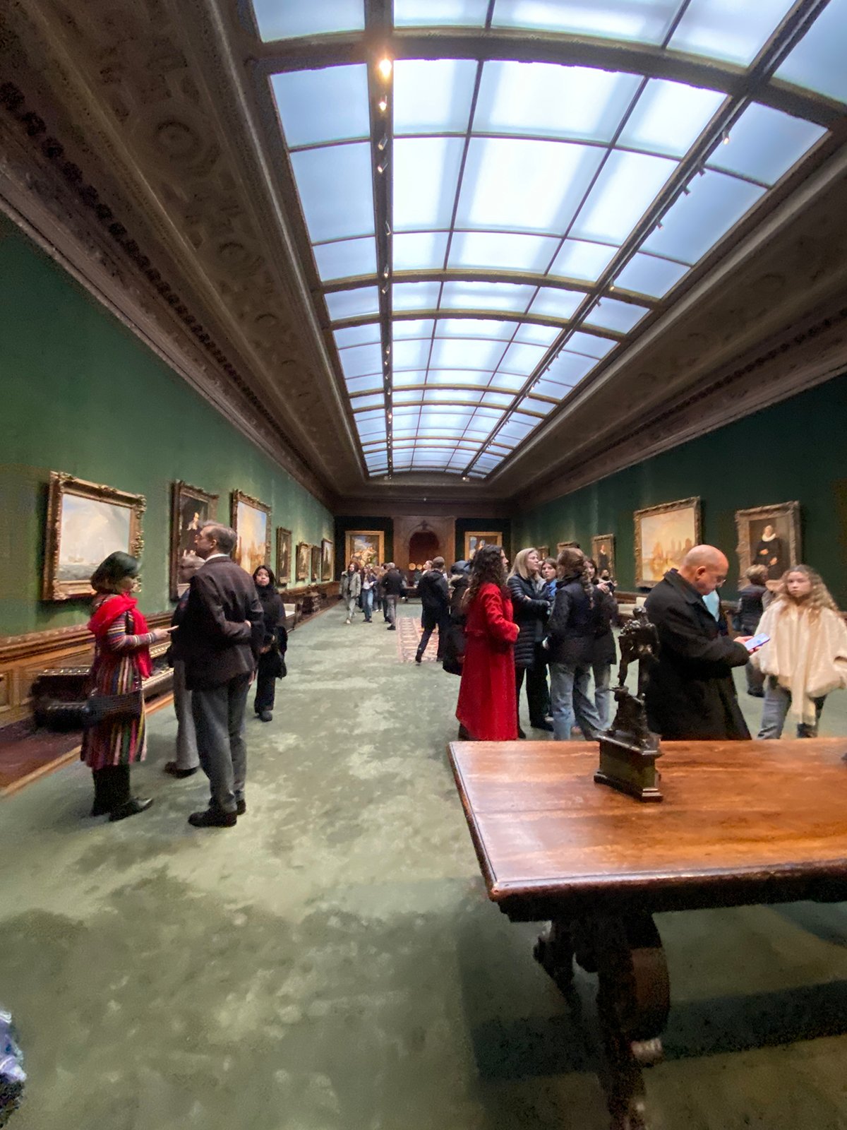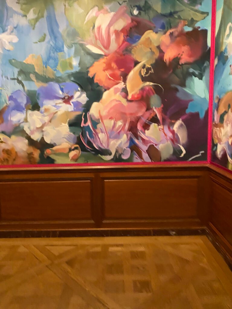 On a separate occasion, I headed to the Upper East Side to visit the recently renovated Frick Museum. I’ve seen this collection many times, in the original location, in its temporary home at the old Whitney on Madison Ave, and now back in its refurbished quarters. There are no photos allowed technically, yet I captured a few random shots on this uber crowded museum day. The room painted by contemporary artist Flora Yukhnovich was lusciously beautiful and inspiring – melding into the 19th century aesthetic of its surroundings seamlessly.